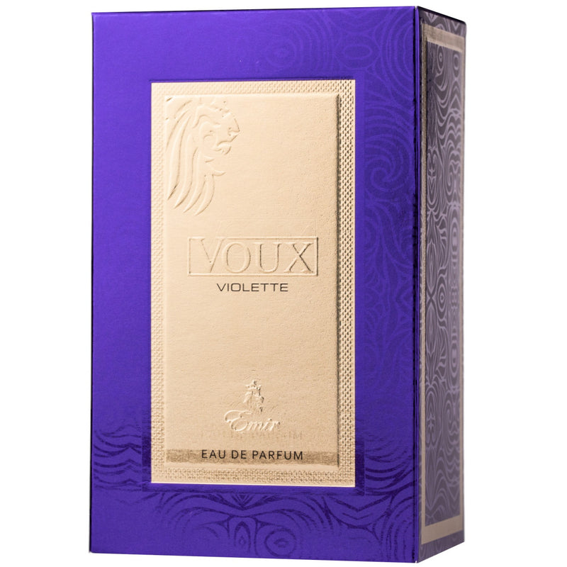 Descopera Emir Voux Violette, o apa de parfum (Eau de Parfum) pentru femei cu un caracter oriental-modern si o prezenta eleganta. Aroma este construita pentru a impresiona prin profunzime si persistenta, fiind potrivita atat pentru zi, cat si pentru seara.